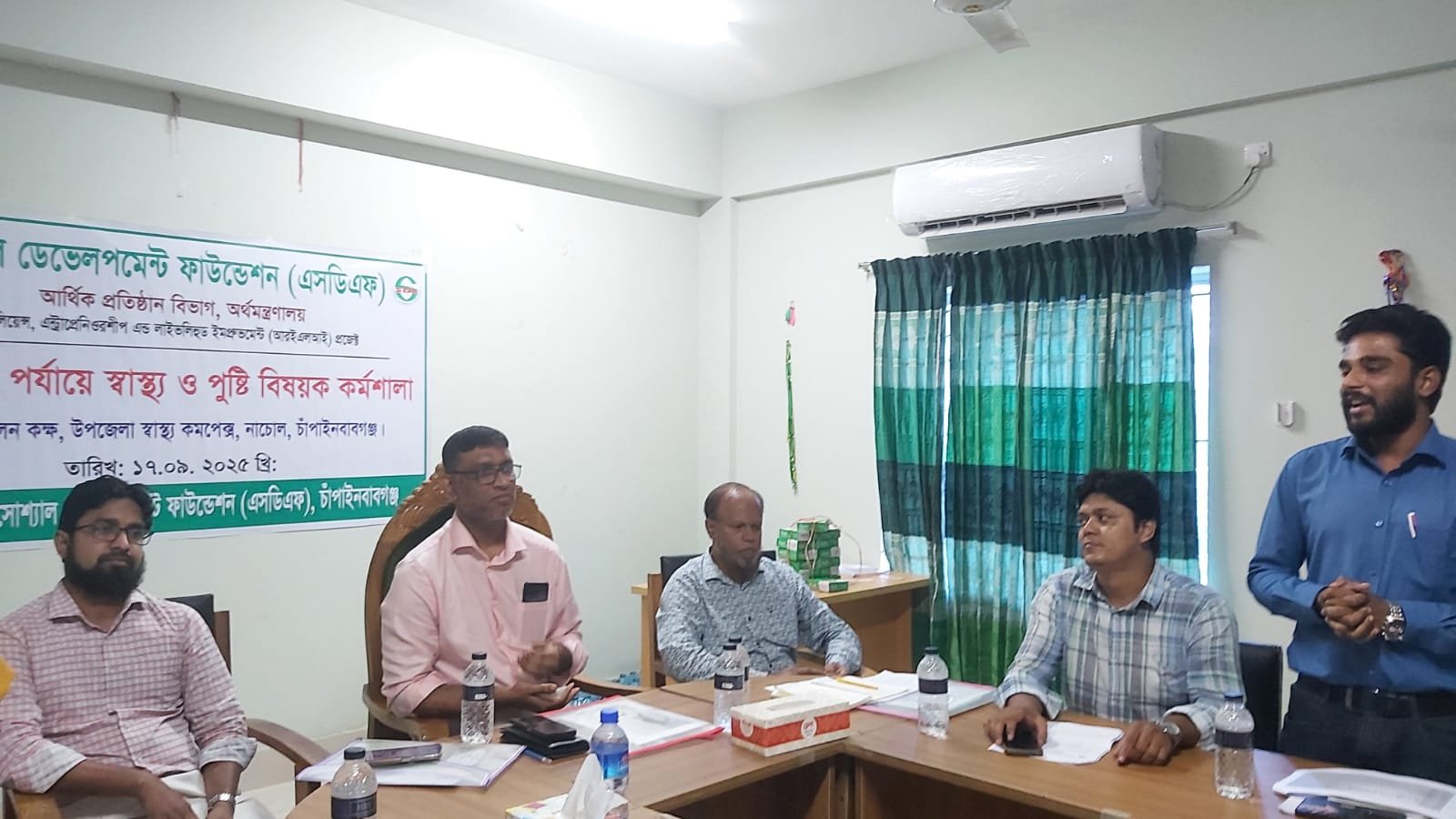 চাঁপাইনবাবগঞ্জে সোশ্যাল ডেভেলপমেন্ট ফাউন্ডেশন (এসডিএফ)- এর রেজিলিয়েন্স, এন্ট্রাপ্রেনিওরশীপ এন্ড লাইভ্লিহুড ইমপ্রুভমেন্ট (আরইএলআই) প্রকল্পের আওতায় চাঁপাইনবাবগঞ্জ জেলায় স্বাস্থ্য ও পুষ্টি বিষয়ক স্টেকহোল্ডার কর্মশালা অনুষ্ঠিত হয়েছে। এসডিএফ চাঁপাইনবাবগঞ্জের জেলা ব্যবস্থাপক মোঃ মাহাবুবুর রশীদ এর সভাপতিত্বে কর্মশালাটি অনুষ্ঠিত হয়।