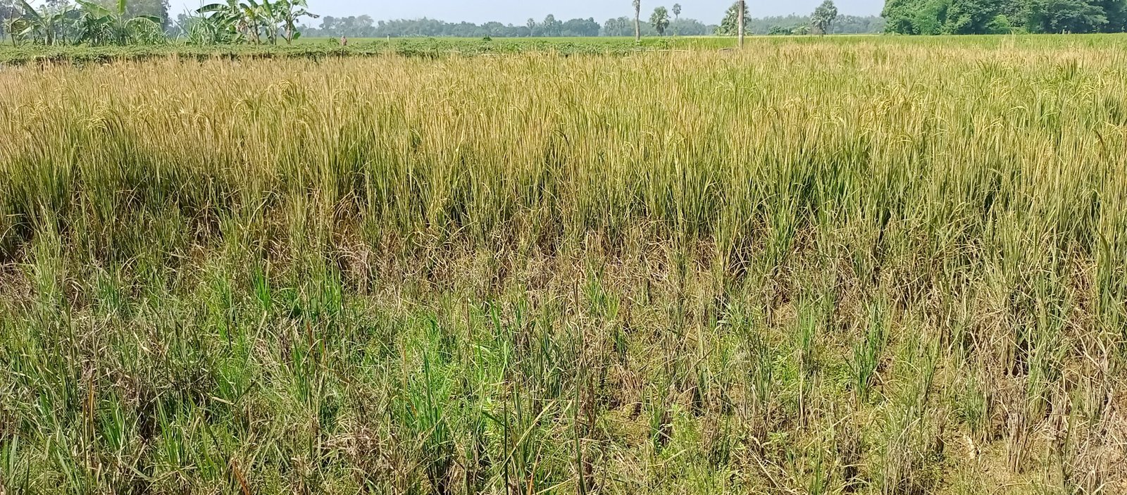 রাজশাহীর তানোরে বিষাক্ত কীটনাশক স্প্রে করে পোড়ানো হলো পরিপক্ক ধানক্ষেতের ফসল।