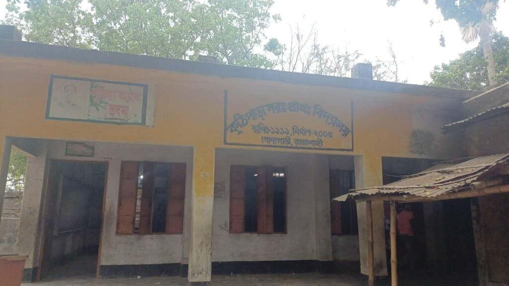 রাজশাহীর গোদাগাড়ী উপজেলার ১৯১৯ সালে প্রতিষ্ঠিত ঐতিহ্যবাহী কুঠিপাড়া সরকারি প্রাথমিক বিদ্যালয়টি এখন শিক্ষক ও শিক্ষার্থীদের জন্য এক আতঙ্কের নাম হয়ে দাঁড়িয়েছে। ১০৭ বছরের পুরনো এই বিদ্যাপীঠের বর্তমান ভবনটি দীর্ঘদিন ধরে সংস্কারহীন ও অত্যন্ত ঝুঁকিপূর্ণ অবস্থায় পড়ে থাকলেও তা মেরামতে নেওয়া হয়নি কোনো কার্যকর পদক্ষেপ। কোমলমতি শিক্ষার্থীদের জীবন নিয়ে ছিনিমিনি! ঝুঁকিপূর্ণ ভবনেই চলছে পাঠদান।