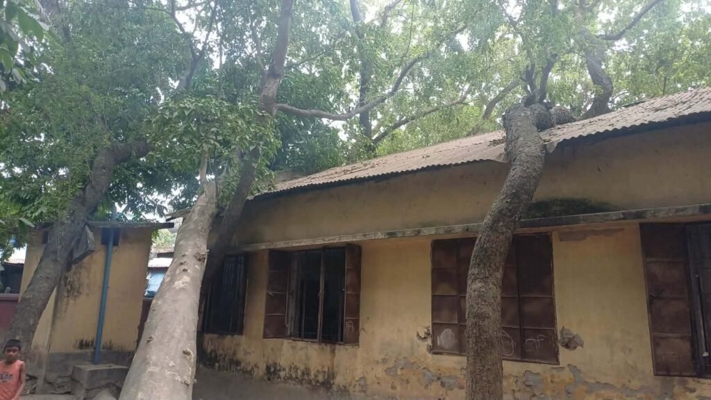 জরাজীর্ণ ভবনে ধুঁকছে কুঠিপাড়া প্রাথমিক বিদ্যালয়।