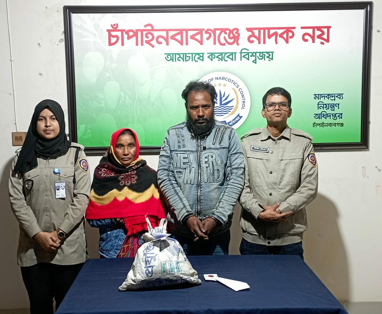 চাঁপাইনবাবগঞ্জে ডিএনসির অভিযানে স্বামী–স্ত্রী মাদক সহ গ্রেফতার