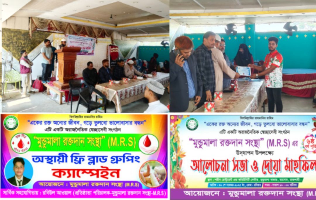 নিজস্ব প্রতিবেদকএকের রক্ত অন্যের জীবন গড়ে তুলবো ভালোবাসার বন্ধন”এই স্লোগানে রাজশাহীর তানোর উপজেলার স্বেচ্ছাসেবী সংগঠন মুন্ডুমালা রক্তদান সংস্থা (MRS) এর