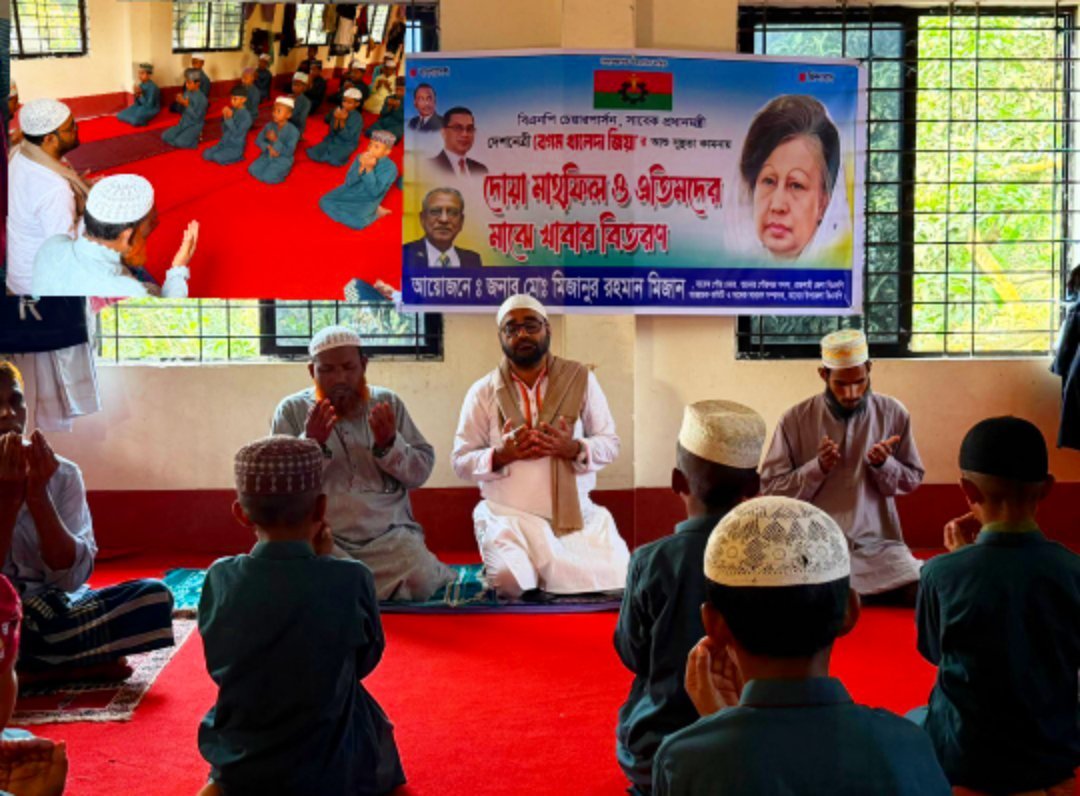 সাবেক প্রধানমন্ত্রী বেগম খালেদা জিয়ার রোগমুক্তি কামনায় দোয়া মোনাজাত ও খাবার বিতারণ