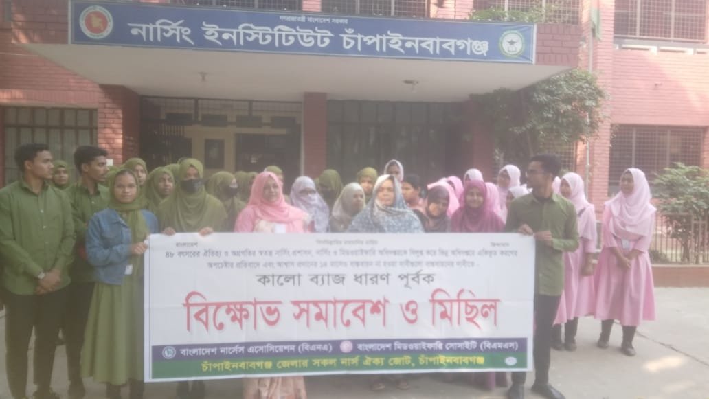 চাঁপাইনবাবগঞ্জে নার্সদের বিক্ষোভ সমাবেশ