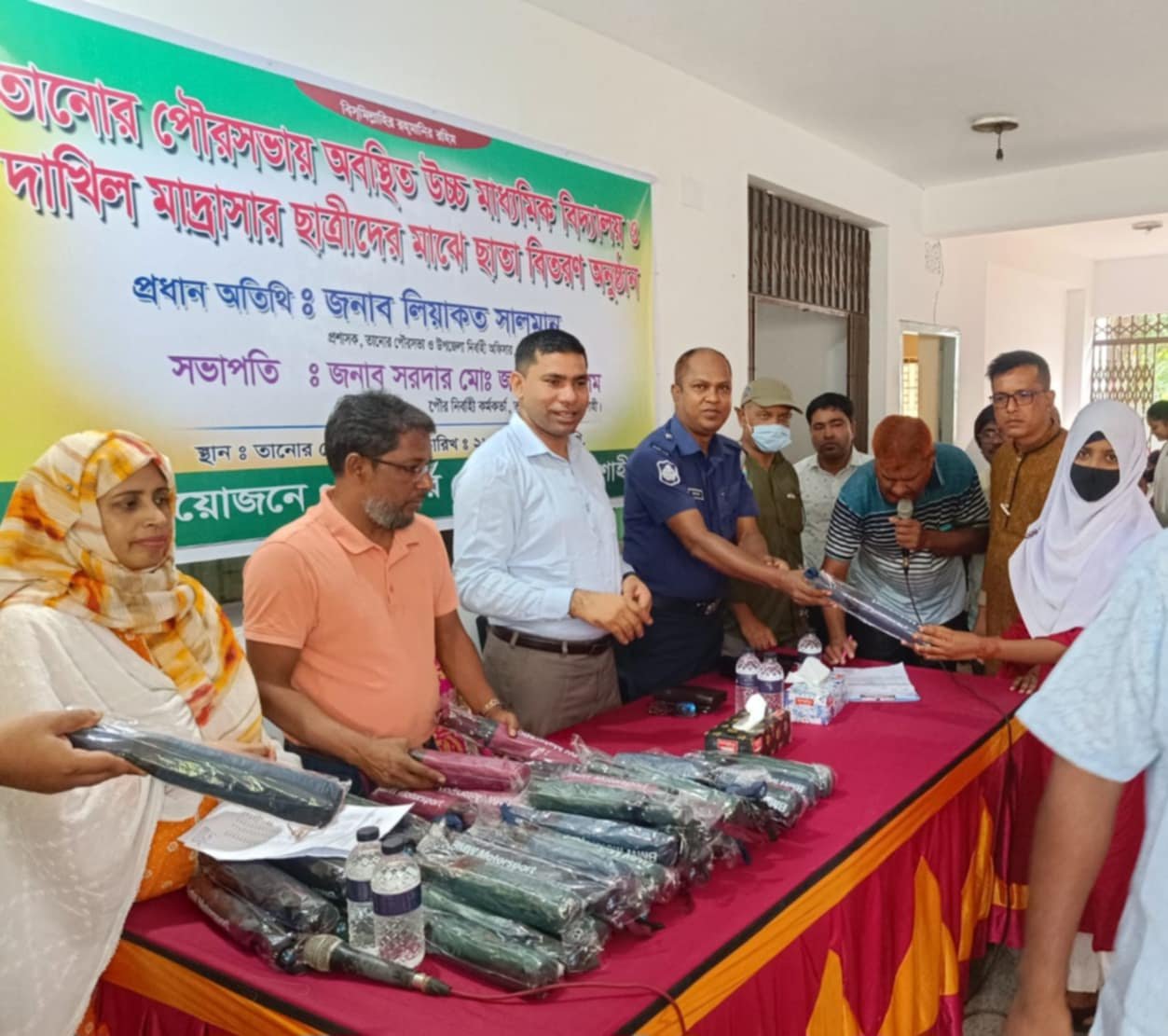 তানোর পৌর উচ্চ বিদ্যালয় গুলোতে শিক্ষা সহায়তায় ছাতা বিতরণ