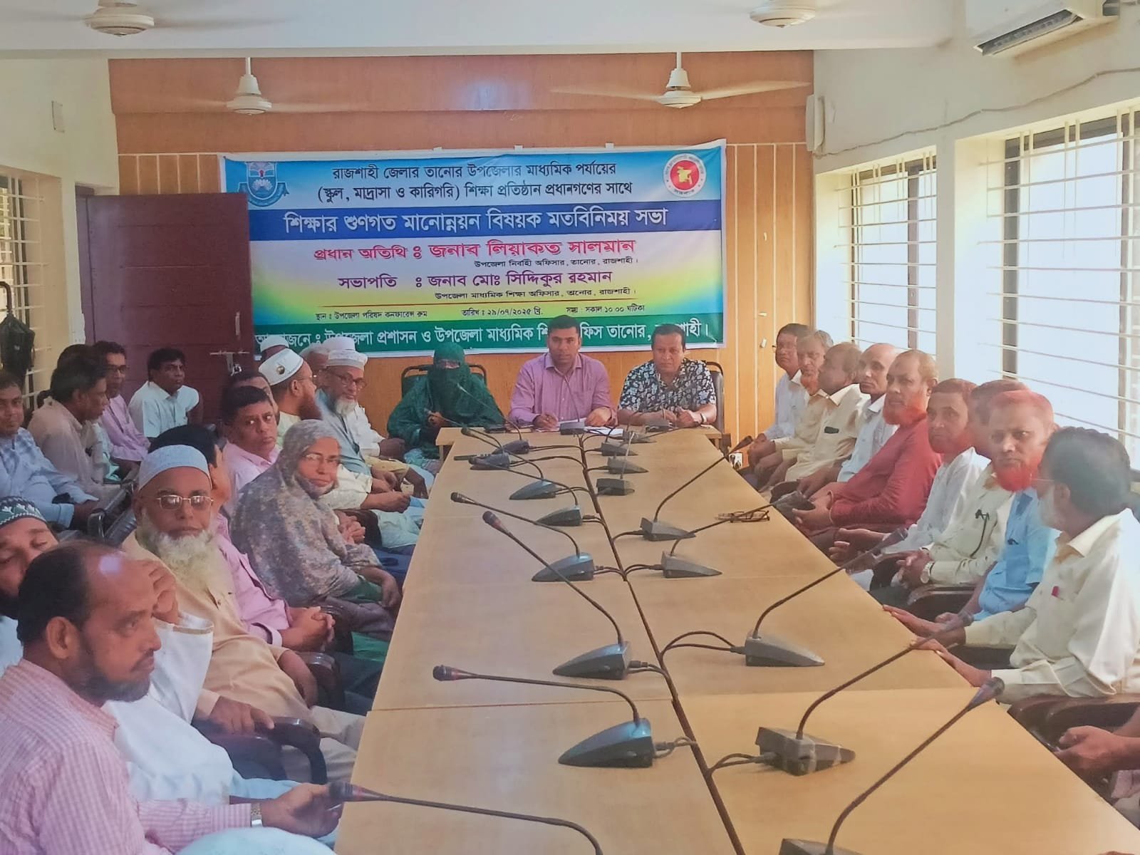 নিজস্ব প্রতিবেদকরাজশাহীর তানোরে শিক্ষার মান উন্নয়নের লক্ষ্যে উপজেলা মাধ্যমিক পর্যায়ের স্কুল, মাদ্রাসা ও কারিগরি শিক্ষা প্রতিষ্ঠান প্রধানদের সাথে মতবিনিময় সভা