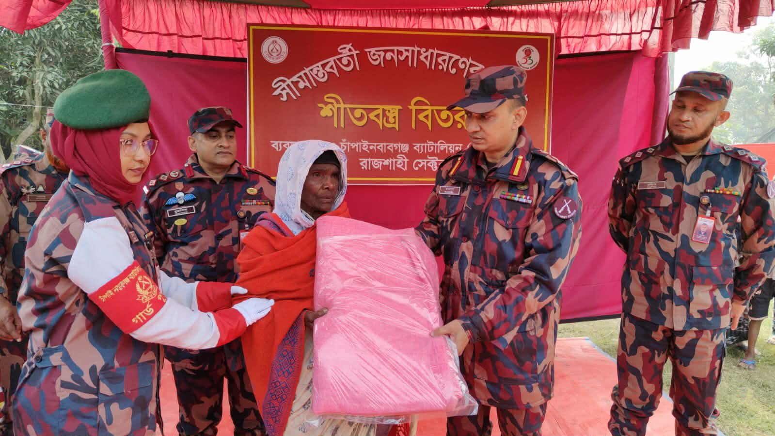 চাঁপাইনবাবগঞ্জ সীমান্তে অসহায়-দুস্থদের মাঝে ৫৩ বিজিবির শীতবস্ত্র বিতরণ