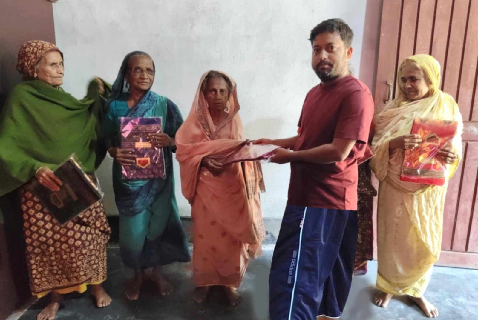 শাজাহানপুরে বিশিষ্ট ব্যবসায়ী খোরশেদ আলম বিপুলের শাড়ি- লুঙ্গি বিতরণ