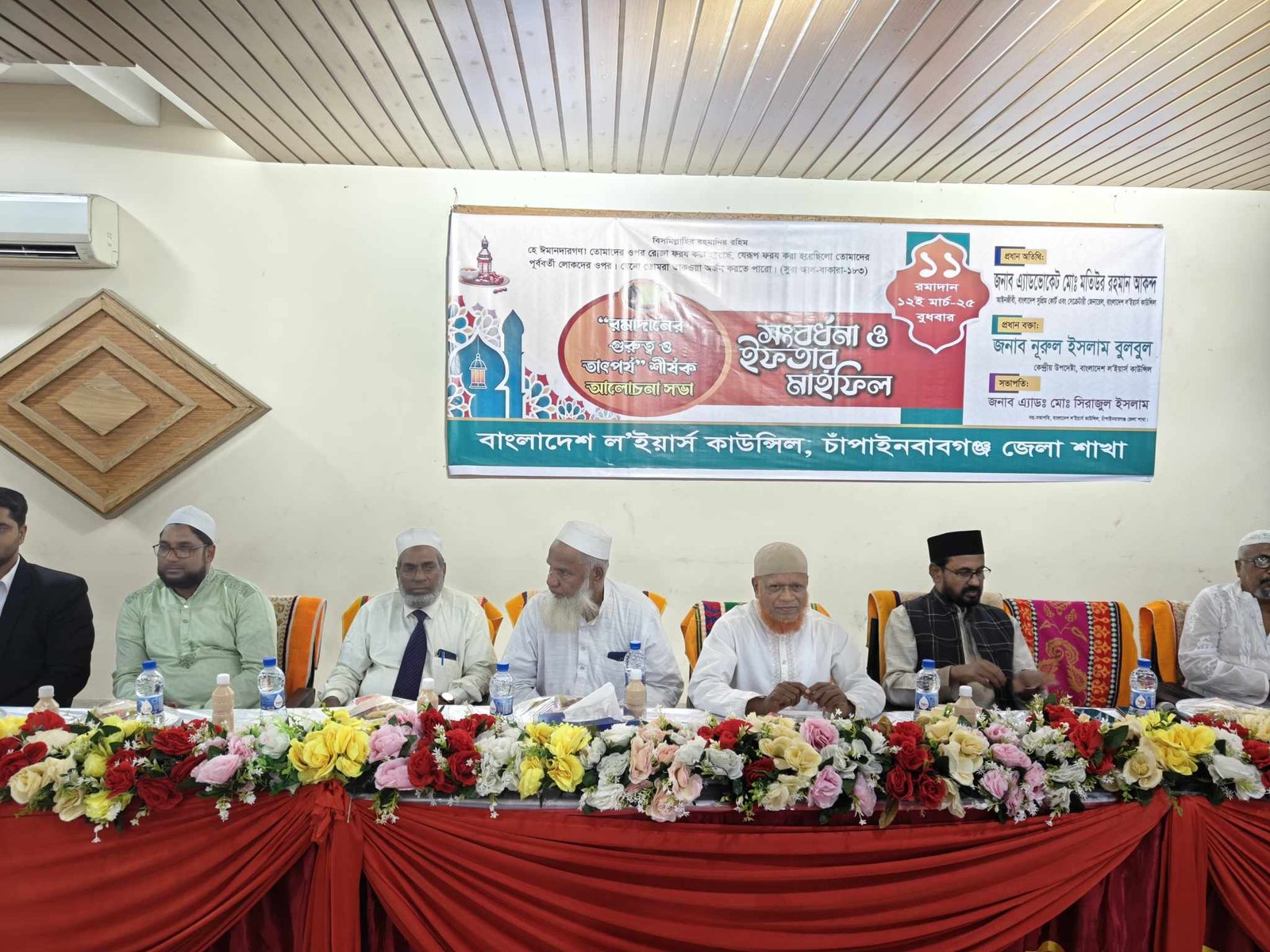 ইমাম হাসান জুয়েল, চাঁপাইনবাবগঞ্জ:বাংলাদেশ ল’ইয়ার্স কাউন্সিল চাঁপাইনবাবগঞ্জ জেলা শাখার উদ্যোগে রমাদানের গুরুত্ব ও তাৎপর্য শীর্ষক আলোচনা সভা, সংবর্ধনা ও ইফতার