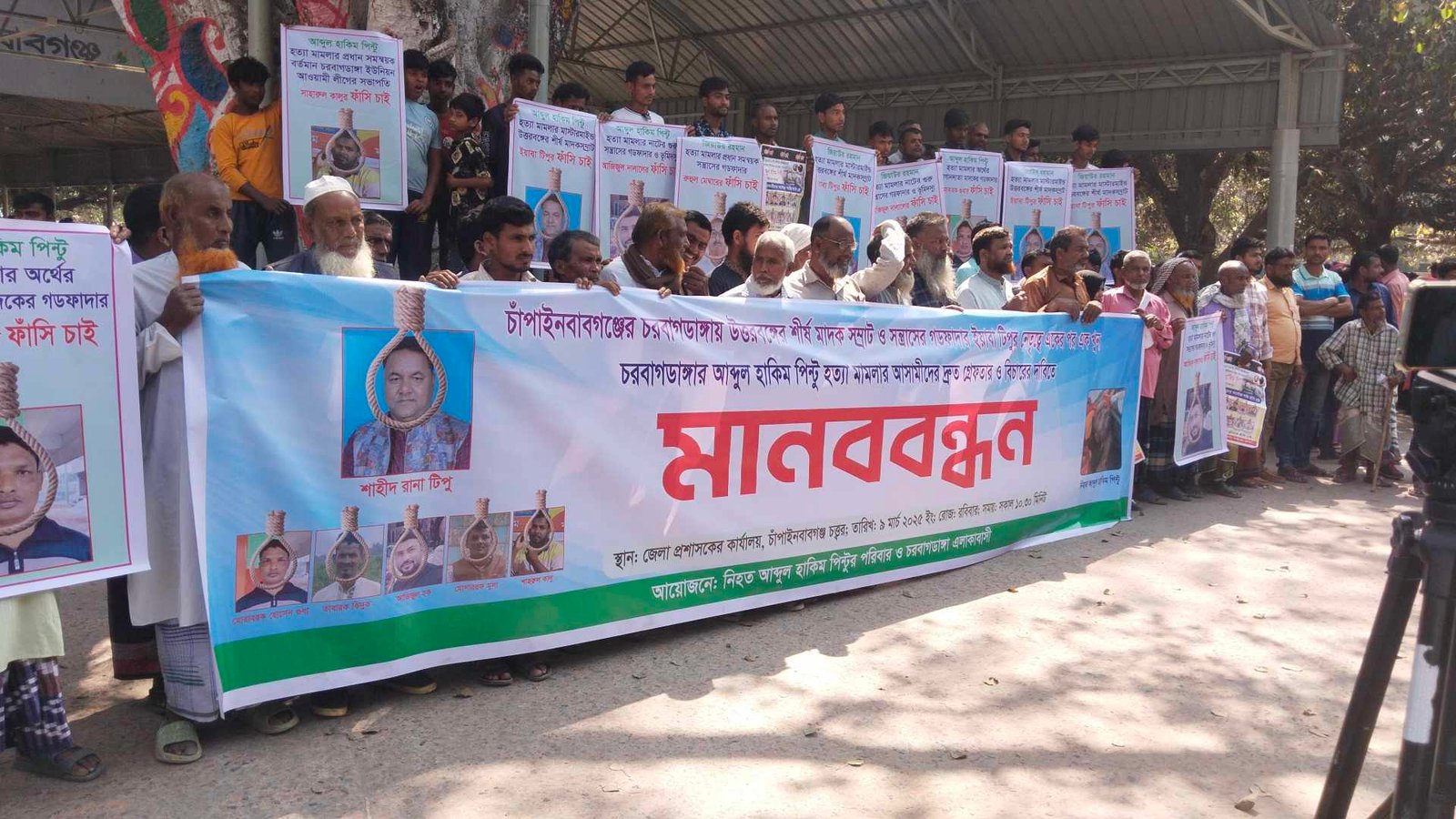 চাঁপাইনবাবগঞ্জে আব্দুল হাকিম পিন্টুর খুনিদের গ্রেফতার ও শাস্তির দাবীতে মানববন্ধন