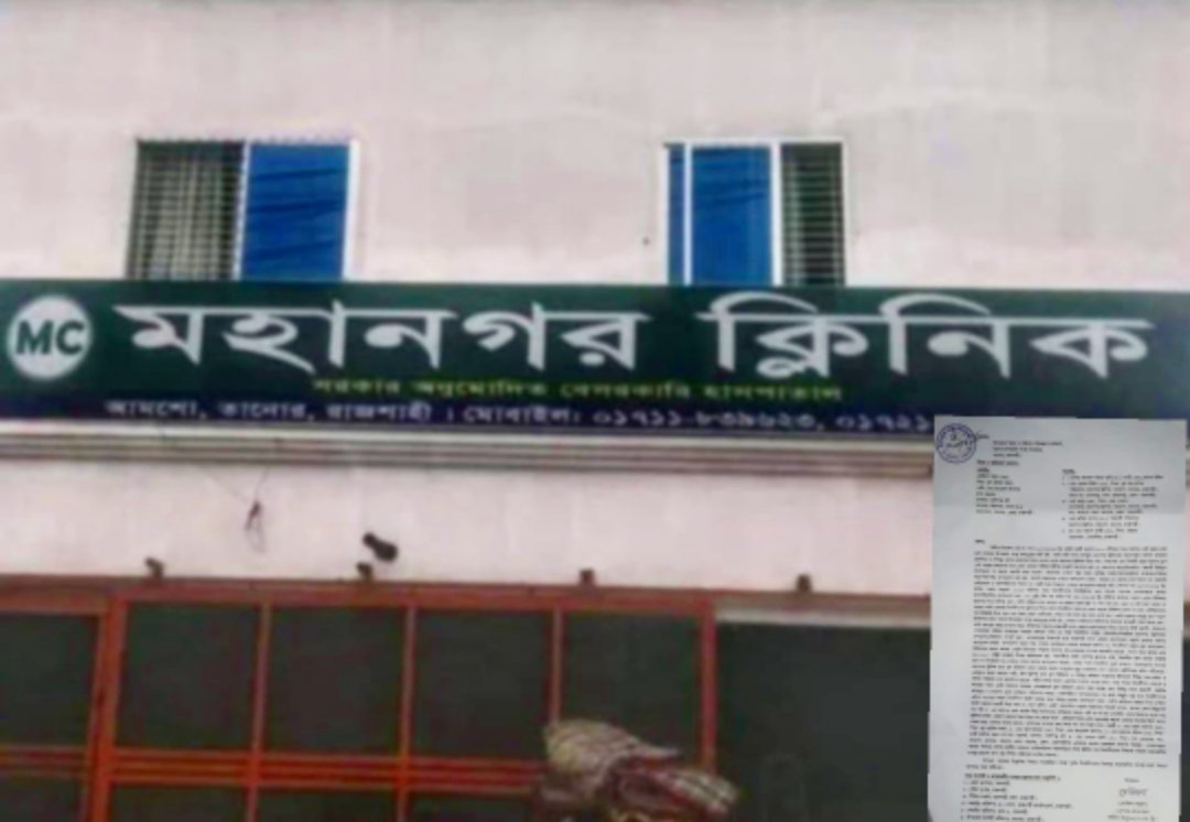 তানোরে মহানগর ক্লিনিকে ভ্রাম্যমান আদালতের অভিযান”২ লাখ টাকা জরিমানা