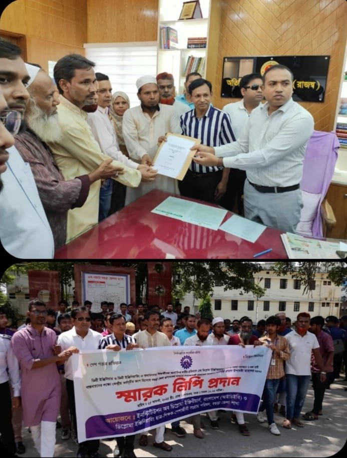 ডিগ্রী ইঞ্জিনিয়ার ও ডিগ্রী ইঞ্জিনিয়ারিং এ অধ্যয়নরত শিক্ষার্থীদের অযৌক্তিক দাবীর প্রতিবাদে ডিপ্লোমা ইঞ্জিনিয়ারিং ছাত্র শিক্ষক পেশাজীবী সংগ্রাম পরিষদ বগুড়া জেলা শাখার স্মারকলিপি প্রদান।